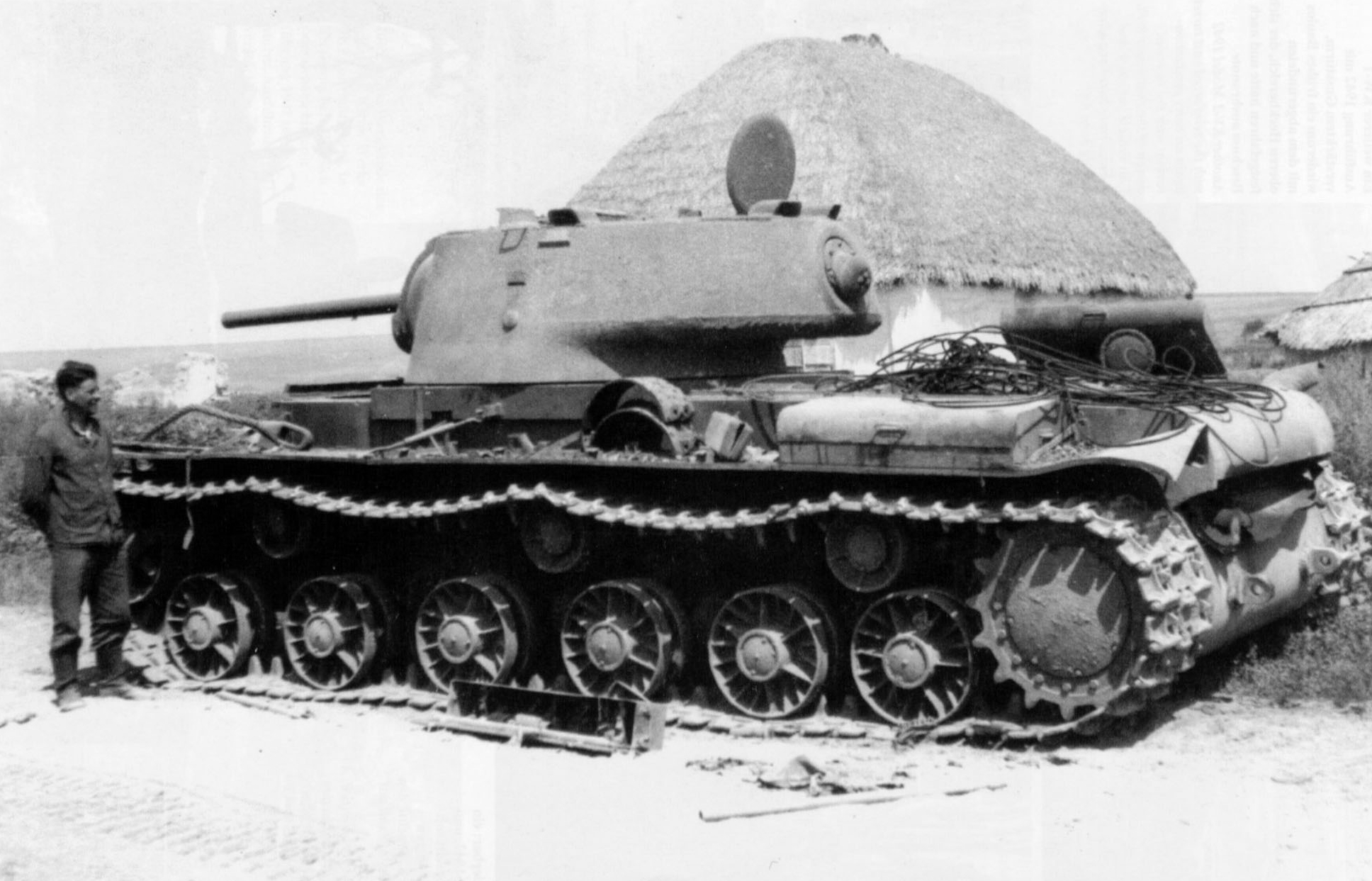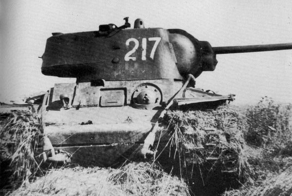 KV-1 model 1941/42 with a partially welded turret and the new ZiS-5 long barrel gun. Unknown unit, Central Front, autumn 1942.